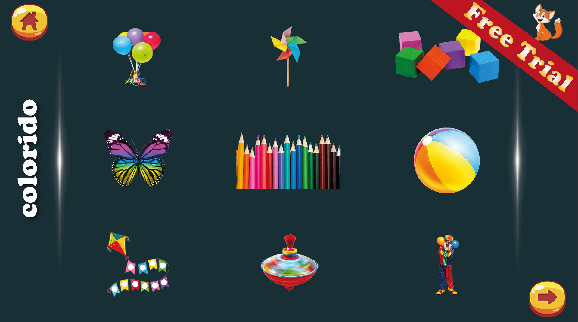 - Con muchas imágenes coloridas para presionar y aprender de ellas.