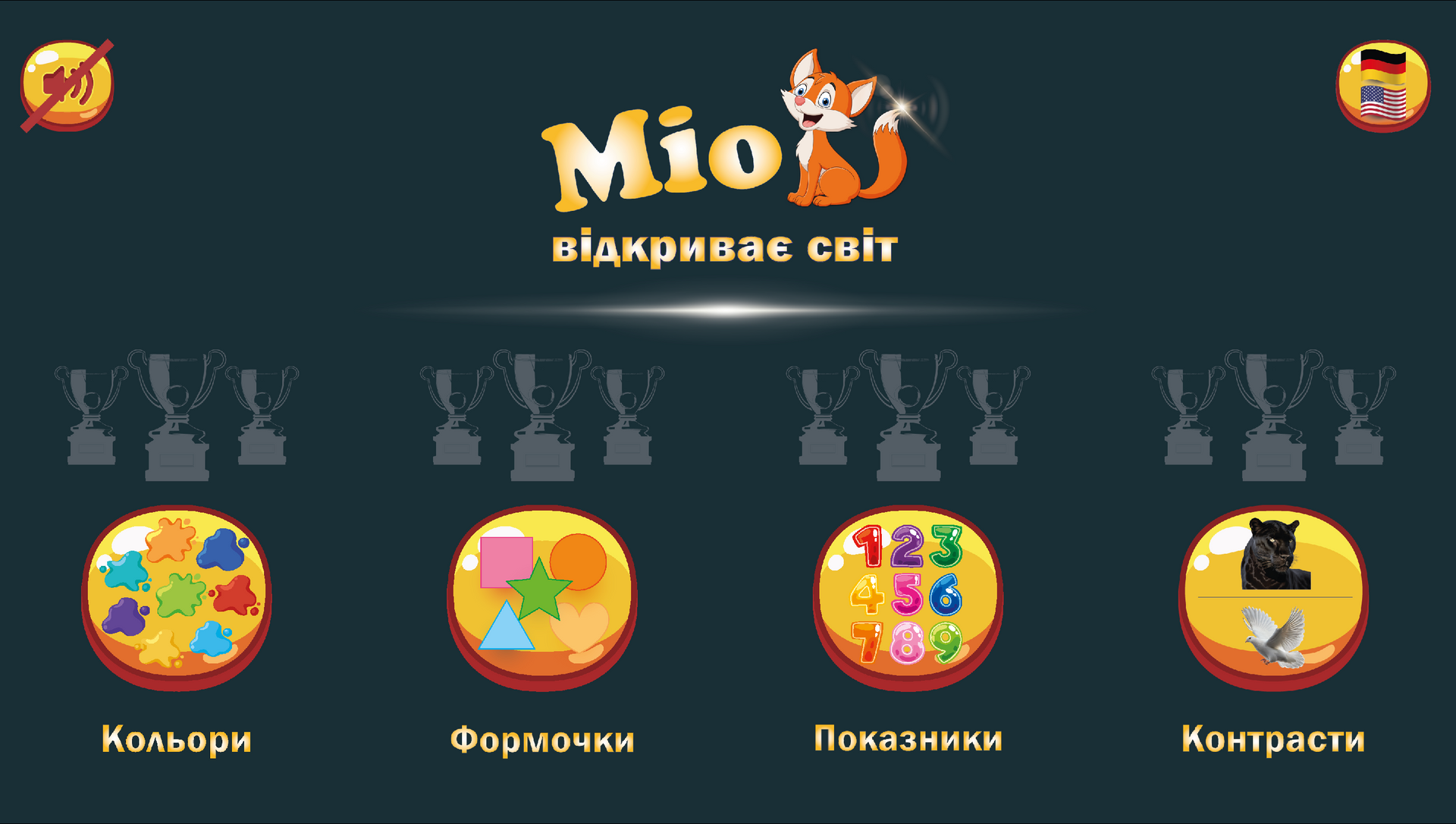 Навчальні додатки Miofox доступні сімома мовами — німецькою, англійською, французькою, іспанською, італійською, українською та польською — і тому ідеально підходять для багатомовного виховання або першого знайомства з іноземною мовою.